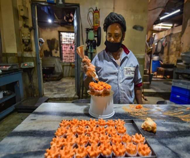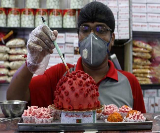 पिछले दिनों ममता सरकार ने मिठाई दुकानों को चार घंटे के लिए खोलने की छूट दी थी। मिठाई दुकानें बंद होने से वहां रोज हजारों लीटर दूध बर्बाद हो रहा था। इस वजह से राज्य सरकार ने यह फैसला किया था। मिठाई की दुकानें खुलीं तो इसके शौकीनों के चेहरे भी खिल उठे। इसी सिलसिले में कोलकाता में एक कंफेक्शनरी वर्कशॉप में कोरोना वायरस जैसे दिखने वाली मिठाई बनाई।
