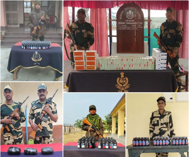 इस मामले को लेकर बीएसएफ ने रविवार को एक बयान में बताया कि ये सभी घुसपैठिये अलग-अलग सीमा इलाके से अवैध तरीके से भारतीय क्षेत्र में दाखिल होने की कोशिश कर रहे थे। इसके अलावा जवानों ने सीमा पर तस्करी के कई प्रयासों को भी विफल कर 565 बोतल प्रतिबंधित फेंसेडिल कफ सिरप समेत तीन किलोग्राम गांजा के अलावा क्विनिन सल्फेट टैबलेट की 2,900 स्ट्रिप्स, 700 इंजेक्शन व 1200 आर्टेमीथर इंजेक्शन की बड़ी खेप जब्त की। इसके अतिरिक्त 11 मवेशियों को भी तस्करी से बचाया।
