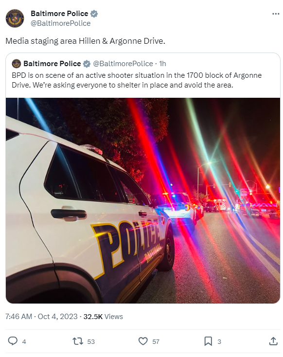 बाल्टीमोर पुलिस विभाग के मुताबिक, घटना मंगलवार (3 अक्टूबर) को हुई है और शूटर कैंपस में काफी एक्टिव था। पुलिस ने X (पूर्व में ट्विटर) पर कहा, हम सभी लोगों को जगह-जगह आश्रय लेने और घटनास्थल से दूर रहने की अपील कर रहे है।