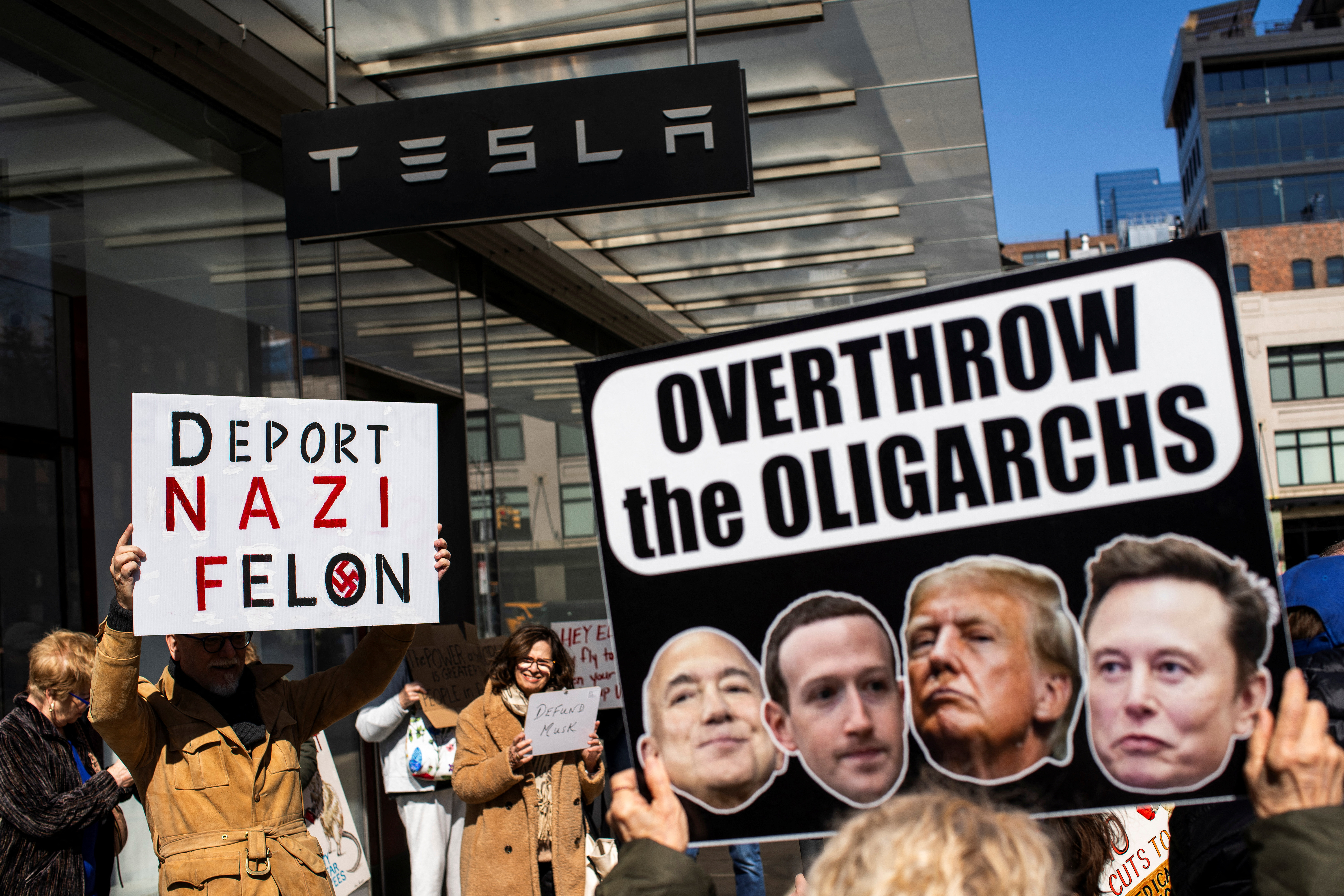 शनिवार को बोस्टन में विरोध करने वाले मैसाचुसेट्स के 58 वर्षीय नाथन फिलिप्स ने कहा, "हम एलन से बदला ले सकते हैं। हम हर जगह शोरूम में जाकर टेस्ला का बहिष्कार करके कंपनी को सीधे आर्थिक नुकसान पहुंचा सकते हैं।"