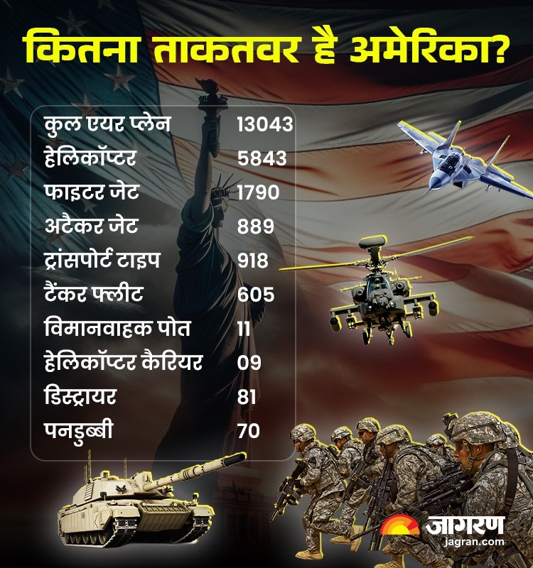 ग्लोबल फायर पावर के मुताबिक, 2025 की मिलिट्री रैंकिंग आई है, इसमें अमेरिका अव्वल नंबर पर है। अमेरिकी नौसेना भी दुनिया में काफी दमखम रखती है। अमेरिकी एयरफोर्स की बात करें तो पैदल आर्मी यानी थल सैनिकों की संख्या 14 लाख है। नैवी में 6.67 लाख सैनिक हैं।