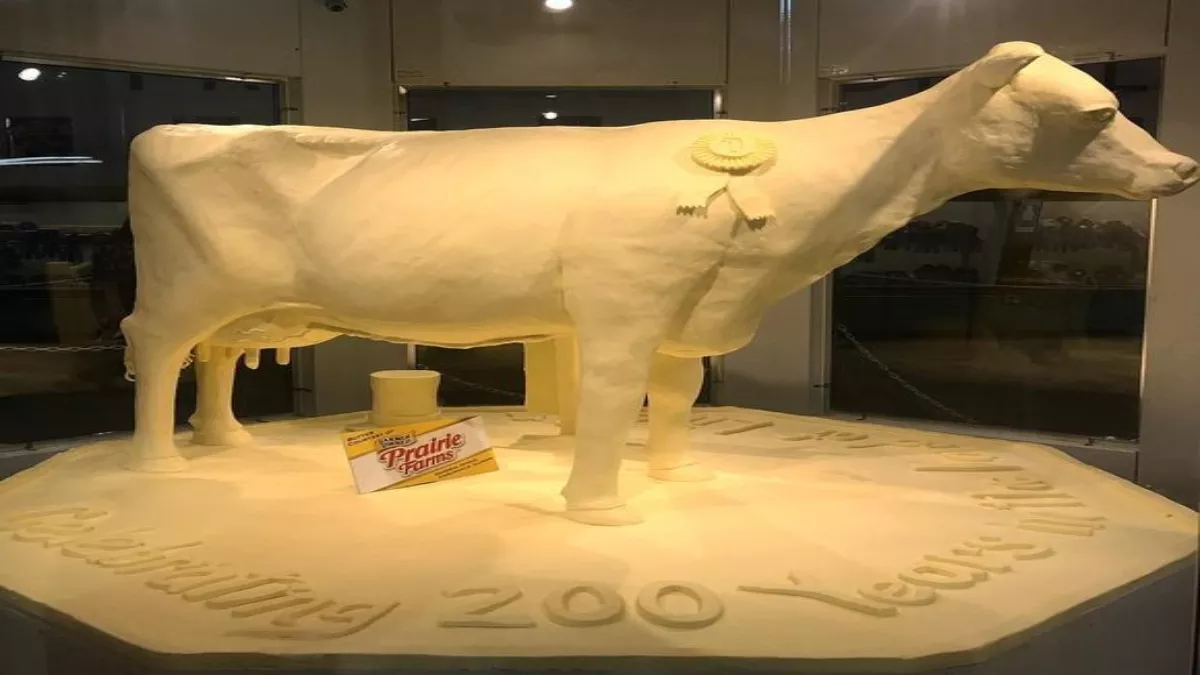अमेरिका में प्रदर्शित की गई मक्खन से बनी गाय