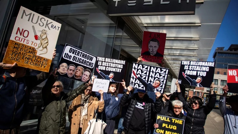 अमेरिका में छंटनी के खिलाफ उदारवादी समूह लगातार एलन मस्क का विरोध कर रहे हैं। कई सप्ताह से उदारवादी समूह टेस्ला के खिलाफ प्रदर्शन कर रहा है ताकि कार कंपनी की बिक्री पर नकारात्मक प्रभाव डाला जा सके और मस्क के सरकारी कार्यदक्षता विभाग (DOGE) का विरोध तेज किया जा सके।