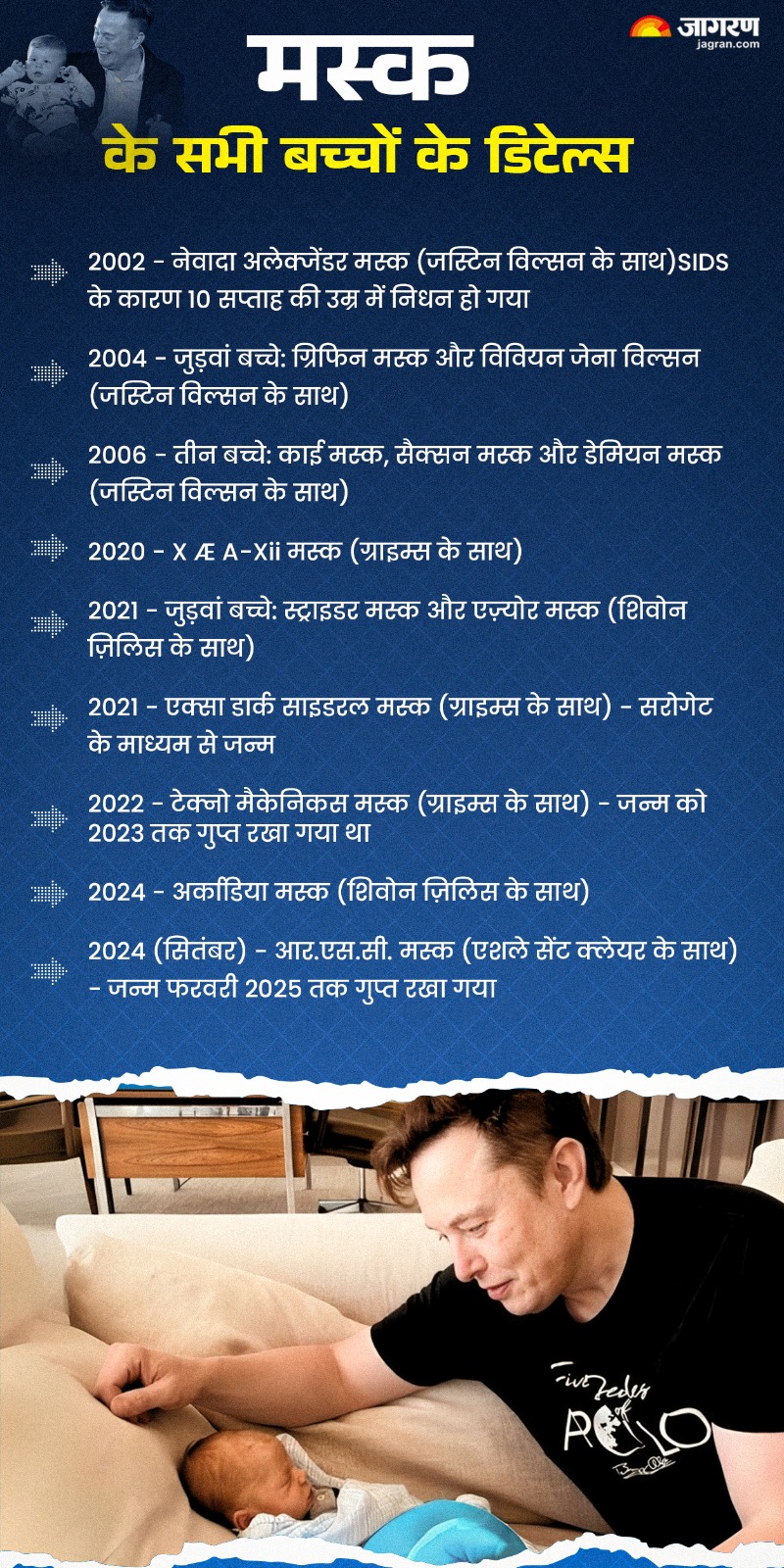 हालांकि, मस्क के पहले बच्चे नेवादा को शिशु मृत्यु सिंड्रोम नाम की बीमारी हो गई थी और सिर्फ 10 सप्ताह की उम्र में उसकी मौत हो गई थी। साल 2004 से लेकर 2006 के बीच मस्क और जस्टिन ने पांच और बच्चों का स्वागत किया था।