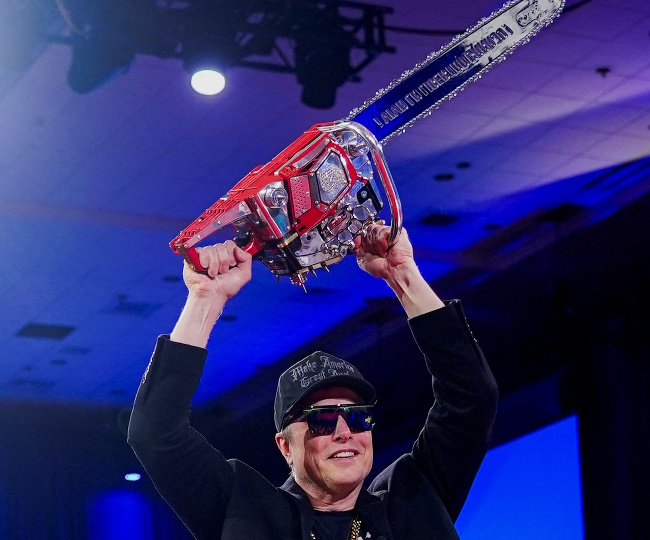 मैरीलैंड के नेशनल हार्बर में कंजर्वेटिव पॉलिटिकल एक्शन कॉन्फ्रेंस में एलन मस्क ने चेनसॉ को उठाया। उन्होंने कहा कि यह नौकरशाही के लिए है। चेनसॉ पर अर्जेंटीना के राष्ट्रपति माइली का नारा मोटे स्पैनिश भाषा में उकेरा है। यह नारा है "विवा ला लिबर्टाड, कैराजो।" इसका अर्थ 'लंबे समय तक स्वतंत्रता, लानत है!'... होता है।