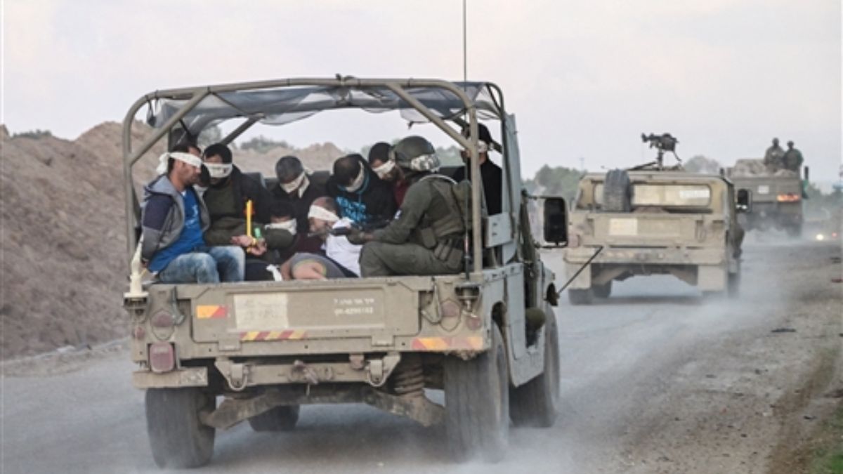 (इजरायली सैनिकों ने गाजा में फलस्तीनियों को गिरफ्तार किया। फोटो सोर्स: एपी)