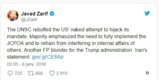 इस बैठक में शामिल फ्रांस के प्रतिनिधि केवी ओस्टरोम का कहना था कि उनके देश को उम्मीद है कि ईरान अपने यहां पर हिंसा को रोकने के लिए सही कदम उठाएगा और मानवाधिकार का हनन नहीं होने देगा। इसके अलावा उन्होंने यह भी कहा कि ईरान लोगों की शंकाओं को दूर करने के लिए उचित कदम उठाएगा। फ्रांस के प्रतिनिधि का यह बयान इसलिए भी खासा मायने रखता है क्योंकि साल की शुरुआत में जब ईरान में विरोध प्रदर्शन चल रहा था उसी दौरान फ्रांस के राष्ट्रपति इमेन्युअल मैक्रॉन ने ईरानी राष्ट्रपति हसन रुहानी से मुलाकात की थी। यूएनएससी की इस बैठक के बाद ईरान के प्रतिनिधि ने ट्वीट कर कहा कि अमेरिकी सरकार ईरान में विरोध प्रदर्शनों को बढ़ावा दे रही है।