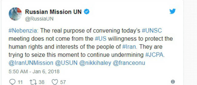 सीरिया के वरिष्ठ पत्रकार वईल अवाद भी इस बात से पूरी तरह से इत्तफाक रखते हैं। उनका भी कहना है कि अमेरिका सोशल मीडिया के प्रभाव से ईरान में अस्थिरता बढ़ा रहा है। उनका यह बयान इस लिए भी बेहद खास है क्योंकि अमेरिका बार-बार ईरान में बंद हुए मोबाइल एप समेत दूसरी चीजों को शुरू करने की सिफारिश करता रहा है। रूस के विदेश मंत्री सर्गी रियाबकोव का भी कहना है कि अमेरिका यह सब केवल ईरान पर न्यूक्लियर डील में बदलाव के लिए दबाव के लिए कर रहा है। उनका यह भी कहना था कि उनकी निगाह में इस संधि में बदलाव की कोई जरूरत नहीं है। उन्होंने यह बयान अमेरिकी रक्षा मंत्री के उस बयान के बाद दिया है जिसमें उन्होंने कहा था कि ईरान को देखकर अमेरिका चुप नहीं रह सकता है। यूएनएससी की बैठक में अमेरिका की तरफ से कहा गया कि ईरान जो कर रहा है उसे दुनिया देख रही है।