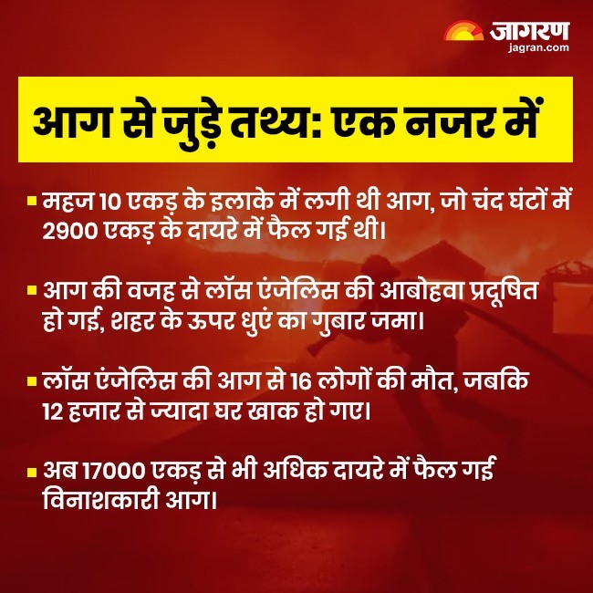 Los Angeles Fire अमेरिका में कैलिफोर्निया स्टेट के लॉस एंजेलिस में लगी विकराल आग अभी भी नहीं बुझ पाई है। अमेरिका इस आग को बुझाने के आगे लाख जतन कर रहा है लेकिन बुझाने की कोशिशों के बीच आग फिर धधक जाती है। इस विकराल आग के बारे में वैज्ञानिक क्या कह रहे हैं अमेरिका आग को बुझाने में क्यों बेबस नजर आ रहा है। यहां जानिए सबकुछ।