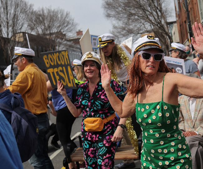 अमेरिका समेत यूरोप के कई देशों में लोगों ने टेस्ला शोरूम के बाहर रैली निकाली। लोगों का आरोप है कि एलन मस्क अमेरिकी सरकार को खत्म करने में जुटे हैं। प्रदर्शनकारियों ने लोगों से तीन बड़ी अपील की हैं। लोग नारे लगा रहे हैं कि 'टेस्ला को रोकना, मस्क को नुकसान पहुंचाना है'। 'मस्क को रोकना जीवन और लोकतंत्र को बचाना है'।