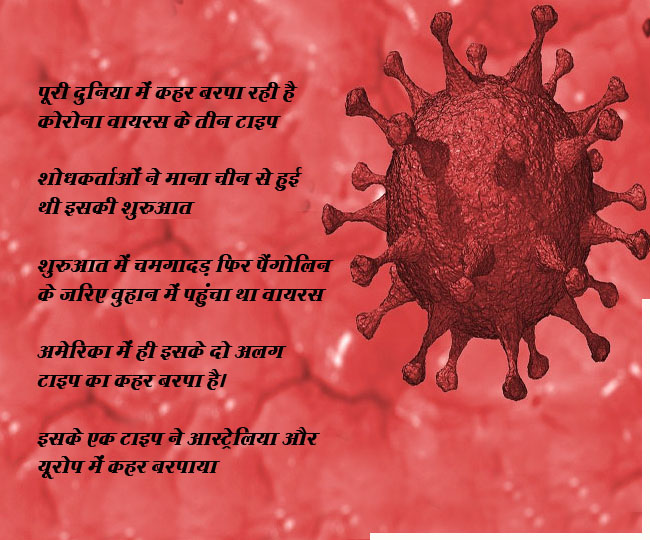 पूरी दुनिया में कहर बरपा रहे कोरोना वायरस के तीन अलग-अलग टाइप, शोध में हुआ खुलासा