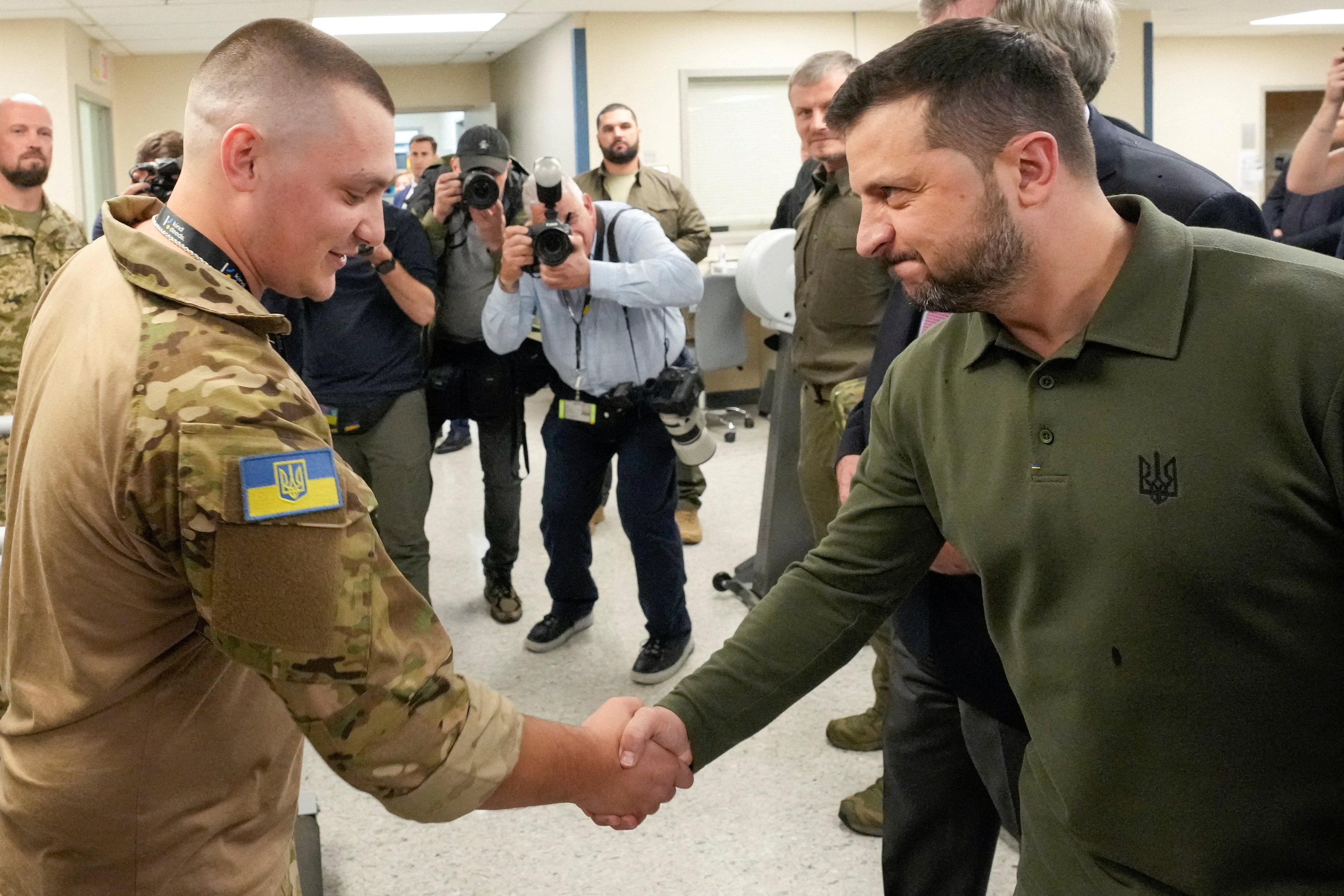न्यूयॉर्क, रायटर। यूक्रेन के राष्ट्रपति वोलोदिमीर जेलेंस्की अमेरिका दौरे पर पहुंचे। यहां उन्होंने न्यूयॉर्क के एक अस्पताल का दौरा किया। इस दौरान उन्होंने घायल यूक्रेनी सैनिकों से मुलाकात की।
