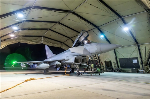अमेरिकी नेतृत्व वाले गठबंधन ऑपरेशन के दौरान यमन में सैन्य ठिकानों पर हमला करने के बाद आरएएफ टाइफून विमान आरएएफ अक्रोटिरी पर हुआ लैंड।