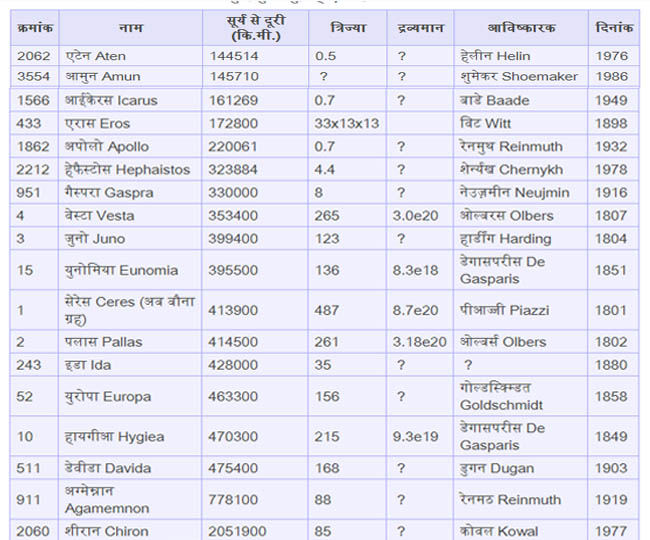 पहचाने जा चुके हैं ये एस्ट्रॉयड