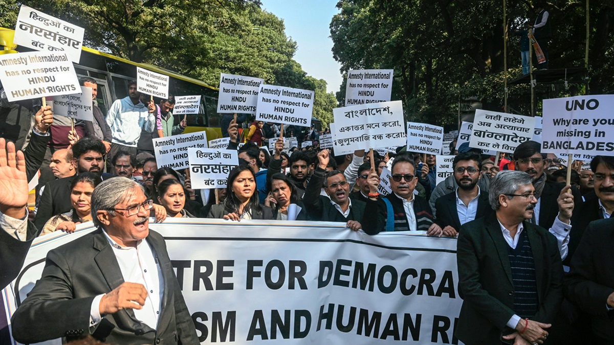 बांग्लादेश हाई कमीशन के बाहर नारेबाजी