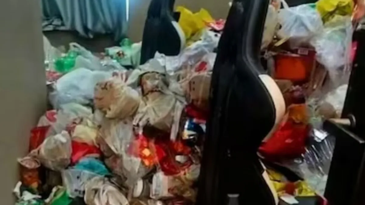वायरल वीडियो में दिख रहे कूड़े में खाली बोतलें, खाने के रैपर कमरे के कोने-कोने में रखे नजर आ रहे हैं। बेडरूम में करीब तीन फीट तक का कूड़े का ढेर लग गया, जिससे लगभग दो गेमिंग कुर्सी और एक मेज ढकी हुई थी।