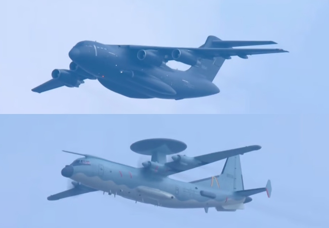 Y-20A और Y-20B ट्रांसपोर्ट विमान भी परेड का हिस्सा थे। Y-20B में चीन के अपने बनाए WS-20 इंजन लगे हैं, जो इसे और मजबूत बनाते हैं। KJ-600, जो चीन का पहला कैरियर-बेस्ड AWACS विमान है, भी पहली बार दिखा। यह 1,200 किलोमीटर तक की निगरानी कर सकता है।