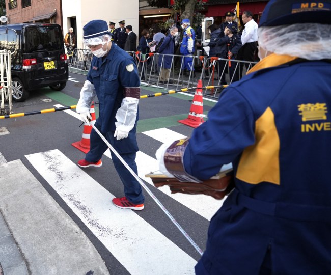 टोक्यो अग्निशमन विभाग ने कहा कि जब आपातकालीन कॉल में एक व्यक्ति के घायल होने की सूचना मिली तो पास के स्थान पर एक एम्बुलेंस भेजी गई। मीडिया रिपोर्टों में कहा गया है कि एक पुलिस अधिकारी के हाथ में चोट लगी है।