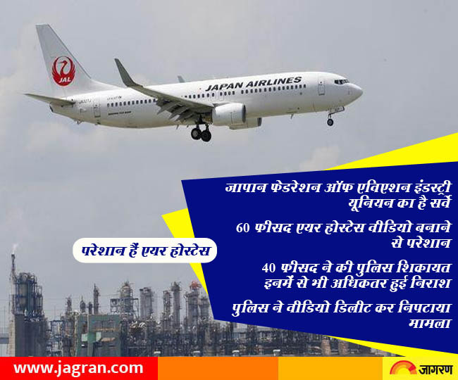 संस्था, टोक्यो स्थित लेबर यूनियन है, जो एविएशन इंडस्ट्री के कर्मचारियों के लिए काम करती है। संस्थान ने इस मुद्दे पर राष्ट्रीय स्तर पर अप्रैल से जून 2019 के बीच सर्वे किया है। सर्वे में पता चला है कि जापानी एयर लाइन्स (Japanese Airlines) की 60 फीसद एयर होस्टेस की सीक्रेट तरीके से आपत्तिजनक फोटो या वीडियो बनाई गई है। खास बात ये है कि ये सभी फोटो या वीडियो उड़ान के दौरान यात्रियों द्वारा गुपचुप तरीके से ली गई हैं।