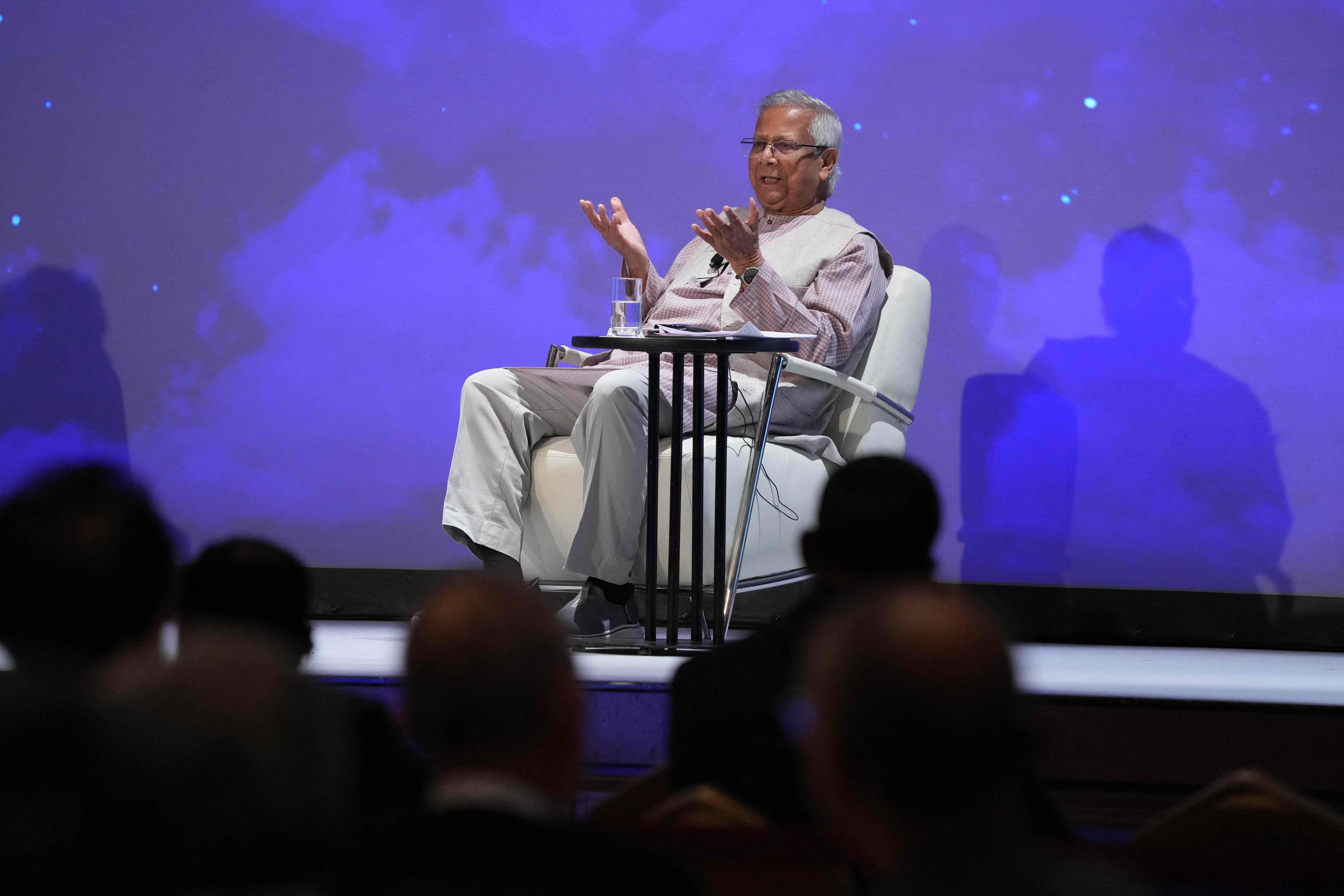 यूनुस ने कहा कि युद्ध यूक्रेन, गाजा और दक्षिण तथा दक्षिण-पूर्व एशिया के देशों में हजारों लोगों के जीवन और आजीविका को नष्ट कर रहे हैं। भारत और पाकिस्तान का नाम लिए बिना यूनुस ने कहा, "हाल ही में हमारे दो पड़ोसियों ने एक छोटा लेकिन महंगा युद्ध लड़ा है। अफसोस की बात है कि हम युद्ध लड़ने में अरबों खर्च कर रहे हैं, जिससे हमारे लाखों लोग भूख से मर रहे हैं या बुनियादी जरूरतों के लिए संघर्ष कर रहे हैं।"