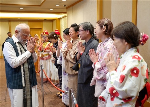 प्रधानमंत्री नरेंद्र मोदी के जापान दौरे पर टोक्यो में उनका भव्य स्वागत हुआ। जापानी समुदाय ने राजस्थानी परिधानों में सजकर भारतीय संस्कृति का प्रदर्शन किया जिसमें गायत्री मंत्र और लोकगीतों से माहौल रंगीन हो गया। पीएम मोदी ने जापानी कलाकारों से मुलाकात की और उनकी तारीफ की। जापानी कलाकारों ने भारतीय संस्कृति को अपनाने पर खुशी जताई। इस दौरे का उद्देश्य भारत-जापान संबंधों को मजबूत करना है।