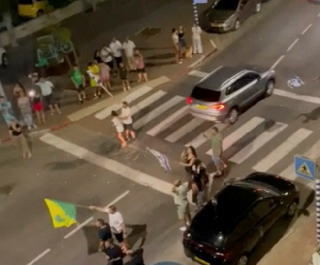 (याह्या सिनवार की मौत के बाद जश्न मनाते इजरायली लोग। फोटो- रॉयटर्स, 17 अक्टूबर, 2024)