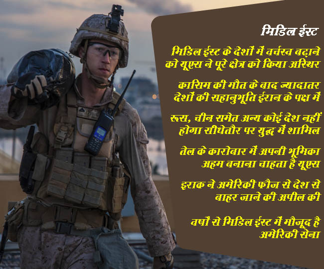 खाड़ी युद्ध की ही बात करें तो वहां पर अमेरिका का मकसद वहां की सत्ता से सद्दाम हुसैन को बेदखल करना था। लेकिन इसमें सफलता मिलने के बाद भी इराक में अमेरिका के मकसद को पूरा करने वाली सरकार नहीं बनी। ठीक वही हाल अफगानिस्तान में भी हुआ। वहां पर वर्षों से अमेरिका की मौजूदगी और तालिबान से लंबी लड़ाई के बाद अब अमेरिका उन्हीं से शांति वार्ता में जुटा है। वहीं तालिबान की बात करें तो उन्होंने अफगानिस्तान में किसी भी तरह से सीजफायर करने से साफ इनकार कर दिया है। ये इस बात का सुबूत है कि अमेरिका का मकसद पूरा नहीं होता है। इतना जरूर है कि वह अपनी कार्रवाई के जरिए मध्य पूर्व को अस्थिर करने की कोशिश जरूर कर सकता है।