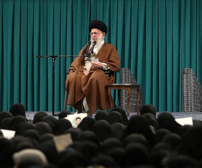 (27 अक्टूबर को तेहरान में एक बैठक को संबोधित करते सर्वोच्च नेता अयातुल्ला अली खामेनेई। फोटो- रॉयटर्स)