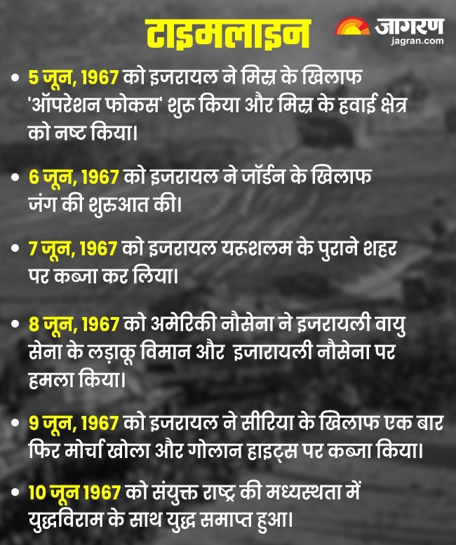 दरअसल, 5 जून को इजरायल ने हवाई क्षेत्र के साथ ही जमीनी हमले भी शुरू कर दिए थे। मिस्र में जमीनी युद्ध 5 जून को शुरू हुआ था। इजरायली टैंक और पैदल सेना ने सीमा पार और सिनाई प्रायद्वीप और गाजा पट्टी में धावा बोल दिया।