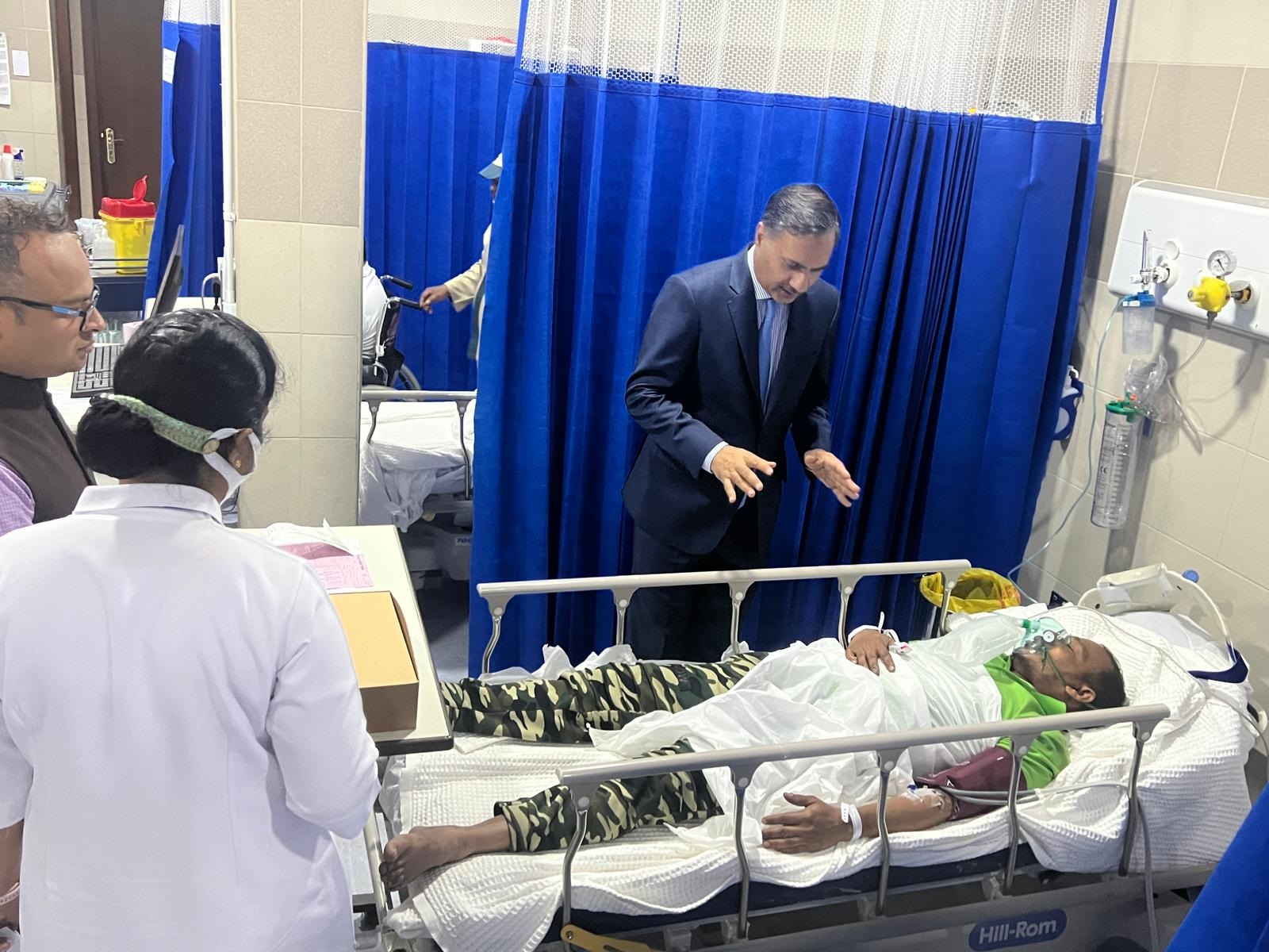 Amb @AdarshSwaika visited the Al-Adan hospital where over 30 Indian workers injured in today’s fire incident have been admitted. He met a number of patients and assured them of full assistance from the Embassy. Almost all are reported to be stable by hospital authorities. pic.twitter.com/p0LeaErguF