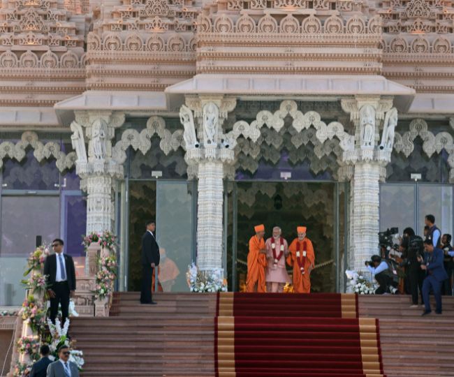 वहीं, इससे पहले मोदी ने विभिन्न धर्मों के लोगों से मुलाकात की, जिन्होंने यहां पहले मंदिर के निर्माण में योगदान दिया। साथ ही मंदिर में वर्चुअल गंगा और यमुना नदियों में जल भी चढ़ाया। मंदिर के अधिकारियों के अनुसार, भव्य मंदिर का निर्माण शिल्प और स्थापत्य शास्त्रों में वर्णित निर्माण की प्राचीन शैली के अनुसार किया गया है। यह पश्चिम एशिया का सबसे बड़ा मंदिर है।
