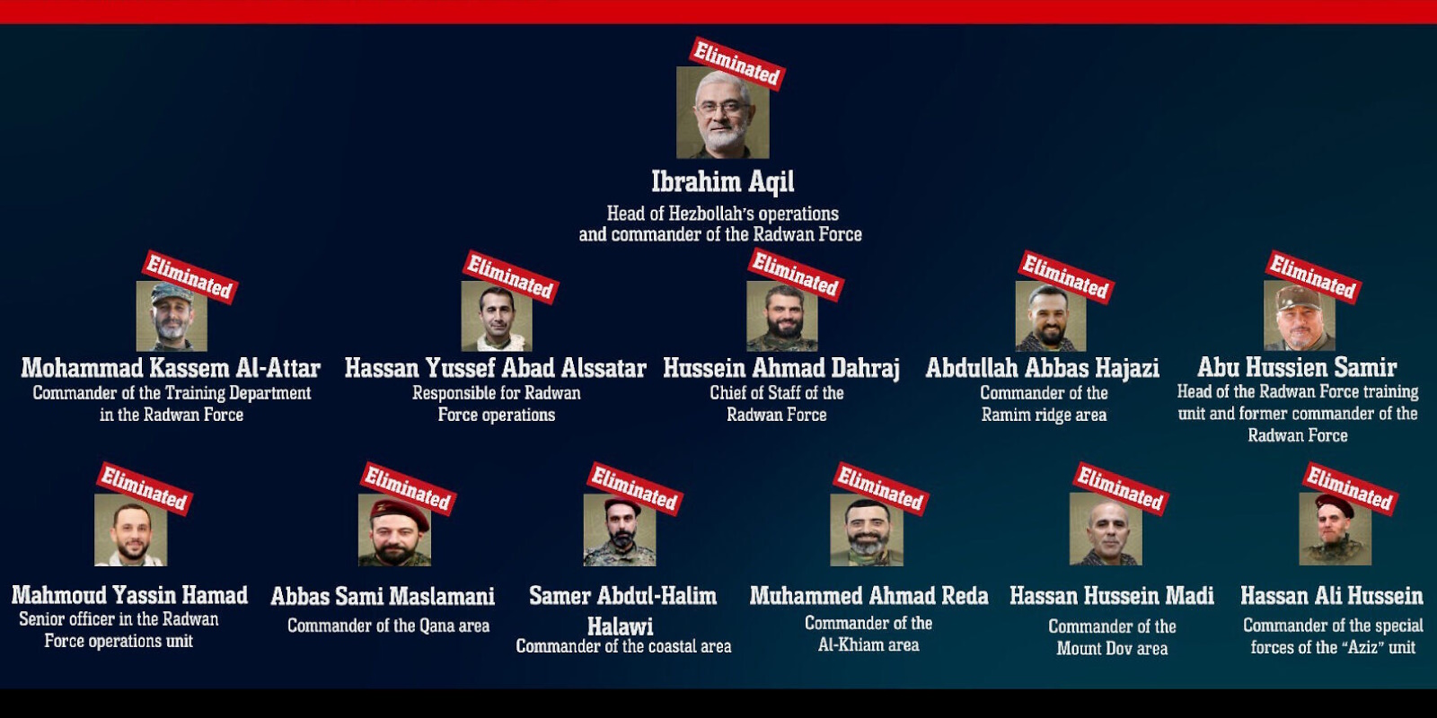 इजरायल पर रॉकेट बरसाने वाले कमांडर इब्राहिम मुहम्मद को मारकर इजरायल ने हिजबुल्लाह के हवाई हमलों की क्षमता को सीमित कर दिया। इसके बाद राडवान फोर्स के कमांडर इब्राहिम अकील को मारा। उससे पहले रणनीतिक यूनिट के प्रमुख फुआद शुकर को ढेर किया।