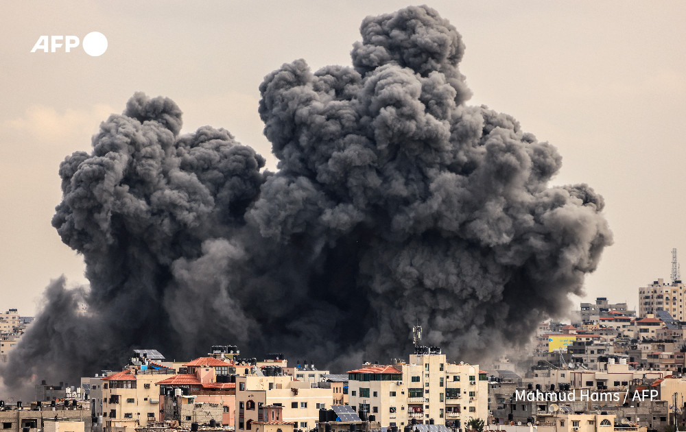 इजरायली बलों के हवाई हमलों के बाद धुआं और आग की लपटें उठ रही हैं, गाजा के विभिन्न स्थानों पर इजरायली बलों और हमास सशस्त्र समूहों के बीच झड़पें जारी।