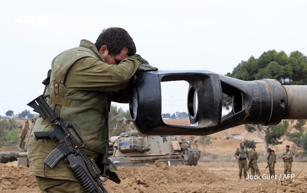 गाजा के साथ सीमा बाड़ पर गश्त लगाते हुए इजरायली सैनिक। इजरायल और गाजा पट्टी के आसपास हमास आतंकवादियों के लगभग 1,500 शव पाए गए हैं।