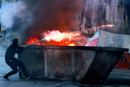9 अक्टूबर, 2023 को कब्जे वाले वेस्ट बैंक में रामल्ला में झड़पों के बीच एक फलिस्तीनी प्रदर्शनकारी ने इजरायली सैनिकों पर हमला किया।