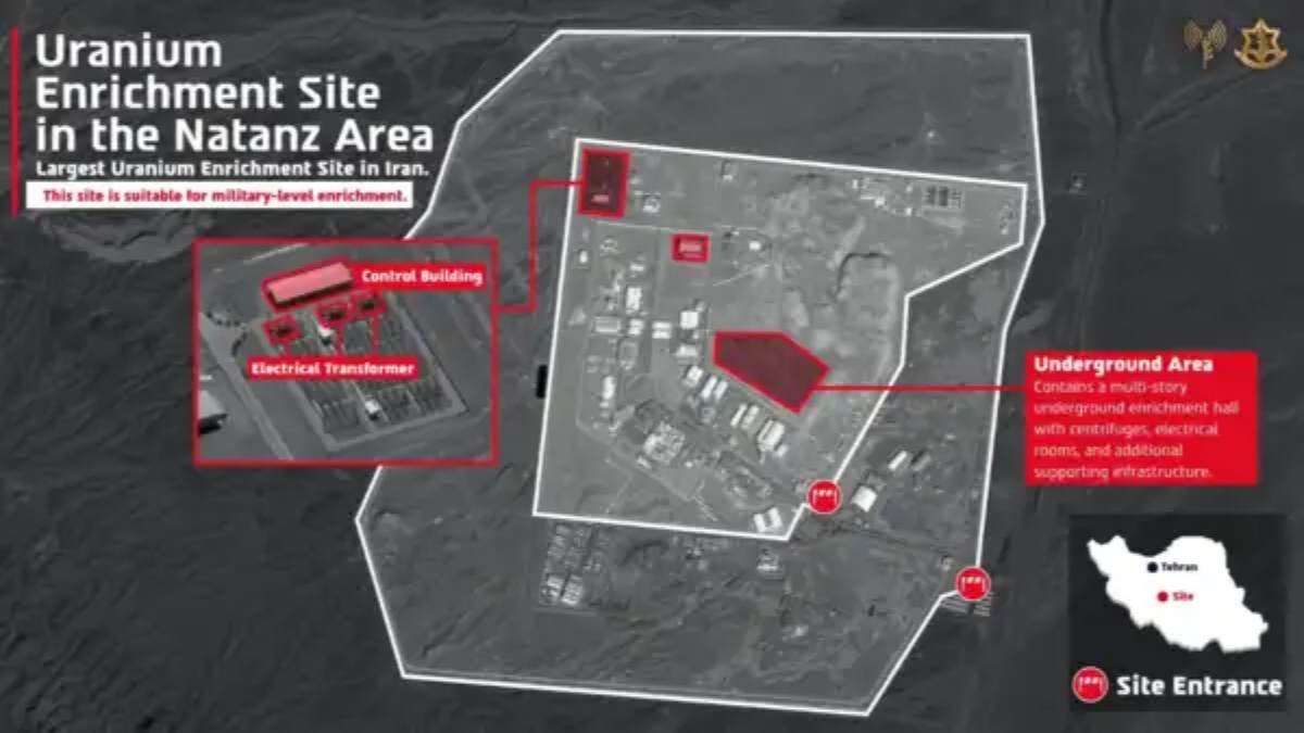 - इजरायल के हमले में ईरान का मुख्य संवर्धन केंद्र नतांज का परमाणु ठिकाना भी तबाह हुआ।