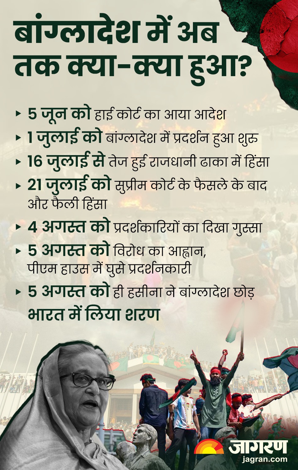 बता दें कि ये विरोध प्रदर्शन एक विवादास्पद नौकरी कोटा सिस्टम को लेकर शुरू हुआ। तो आइये जान लेते है बांग्लादेश में जुलाई से अगस्त के बीच क्या-क्या हुआ? आइये टाइमलाइन पर डाले एक नजर...