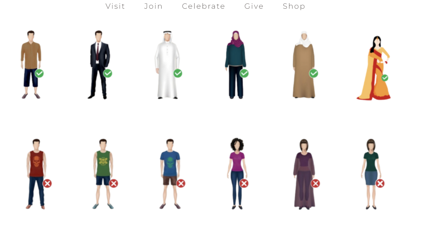 लोगों को गर्दन, कोहनी और टखनों के बीच के शरीर के अंग ढंकना होगा। इसके अलावा, टोपी, टी-शर्ट और आपत्तिजनक डिजाइन वाले अन्य कपड़ों की अनुमति नहीं है। मंदिर समीति ने ड्रेस कोड के बारे में स्पष्टता प्रदान करने के लिए वेबसाइट पर एक तस्वीर भी साझा की है।