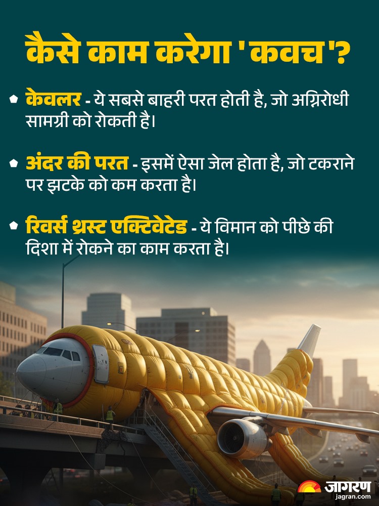 दो सेकेंड से भी कम समय में विमान के अगले हिस्से, बीच के हिस्से और सबसे पीछे वाले हिस्से, तीनों जगह से बड़े-बड़े 'कवच' (विशाल एयरबैग) बाहर निकलेंगे।