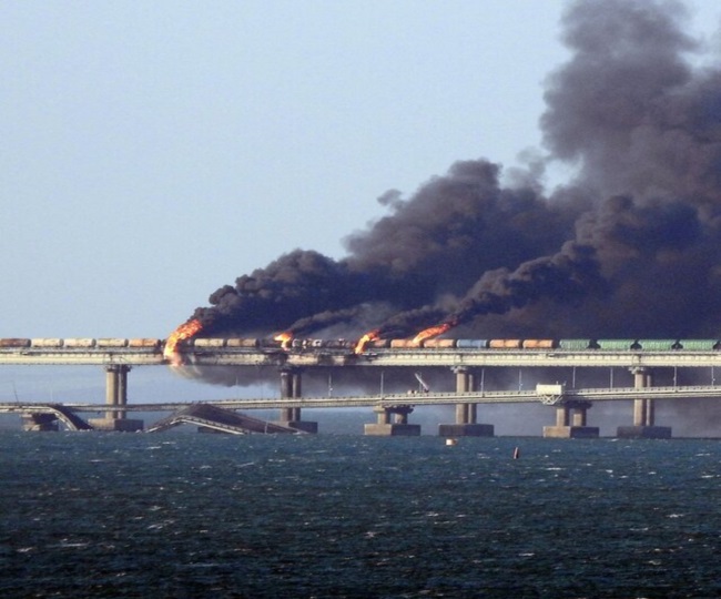 Russia Vs Ukraine रूस को क्रीमिया से जोड़ने वाला क्रेच ब्रिज एक बड़े बम धमाके में ध्वस्त हो गया है। क्या इस घटना से पुतिन अपना आपा खो सकते हैं। क्या पुतिन इस जंग में परमाणु बमों का प्रयोग कर सकते हैं। यह पुल रूस के लिए क्यों जरूरी है।