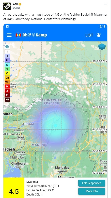 Earthquake in Myanmar: म्यांमार में महसूस किए गए भूकंप के झटके, 4.5 मापी गई तीव्रता