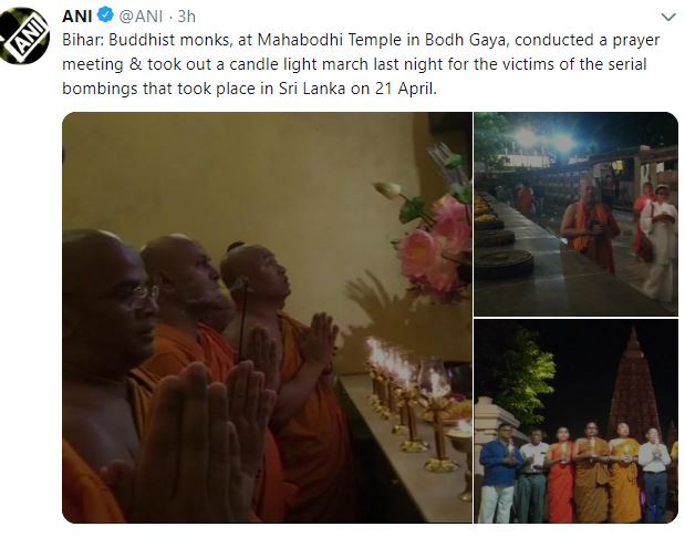 बिहार के बोधगया में भी बौद्ध भिक्षुओं ने बम धमाकों के पीड़ितों के लिए प्रार्थना सभा आयोजित की। रविवार देर रात को आयोजित पार्थना सभा में बौद्ध भिक्षुओं ने कैंडल मार्च निकाल कर सीरियल बम ब्लास्ट में मारे गए लोगों को श्रद्धांजलि दी।