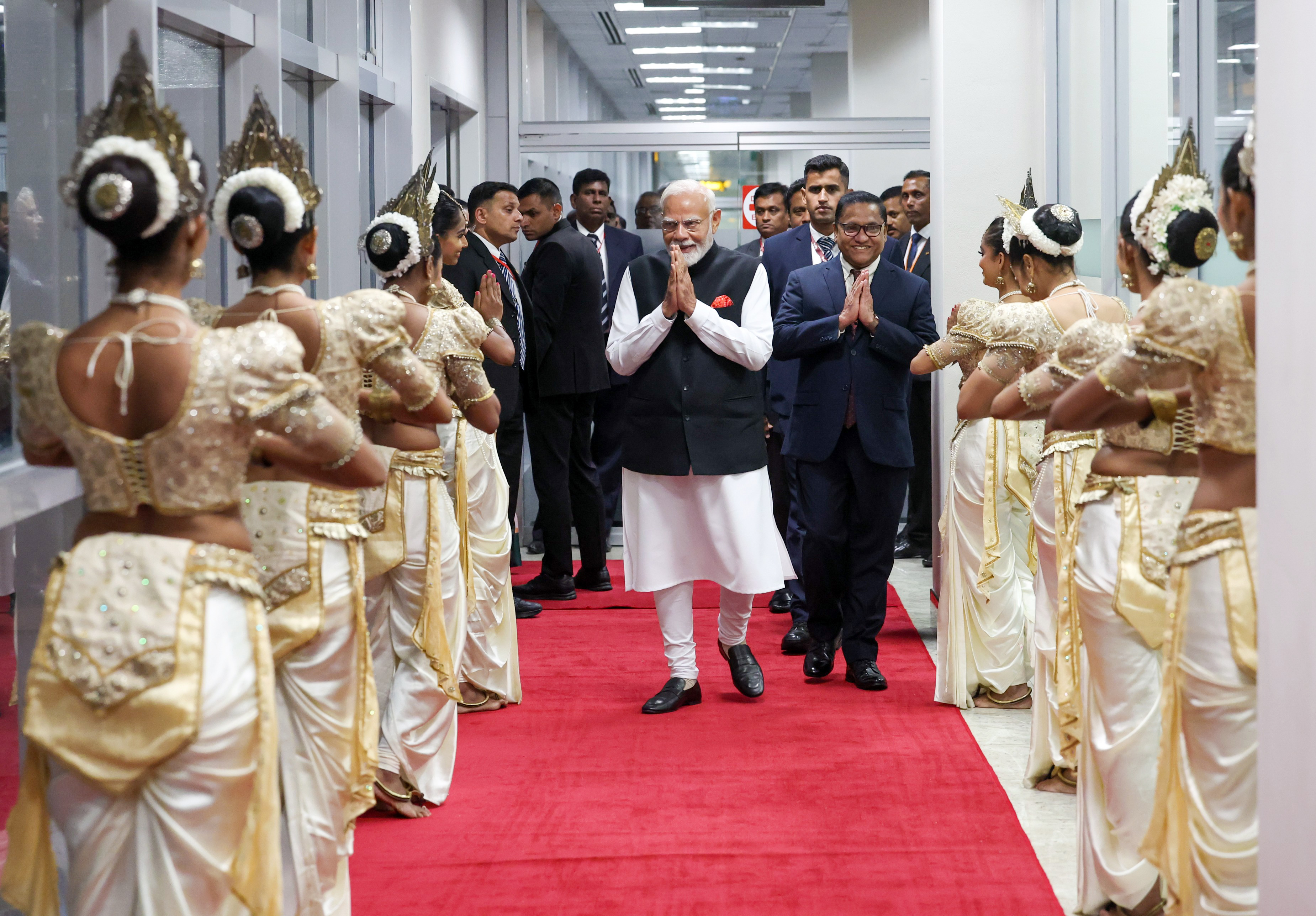 प्रधानमंत्री मोदी का श्रीलंका पहुंचने पर गर्मजोशी से स्वागत किया गया। होटल में भारतीय समुदाय के सदस्यों के साथ हाथ मिलाते हुए उन्हें एक कठपुतली नृत्य कार्यक्रम का प्रदर्शन भी देखने को मिला। यह स्वागत दोनों देशों के बीच मजबूत सांस्कृतिक और जनसंपर्क संबंधों को दर्शाता है।