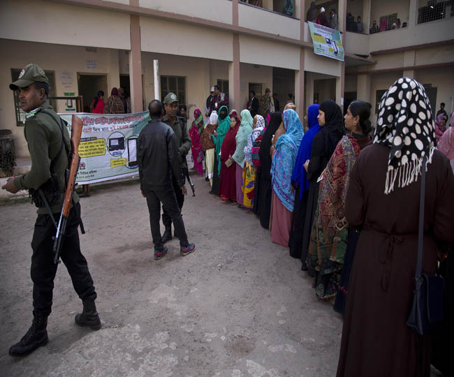बांग्लादेश में 300 में से 299 संसदीय सीटों पर हो रहे चुनाव में करीब 1,848 प्रत्याशी मैदान में है। देशभर में 40,183 मतदान केंद्र बनाए गए है, जिनमें 10 करोड़ से अधिक मतदाता वोट डालेंगे। मतदान केंद्रों और उसके आसपास की सुरक्षा के लिए करीब छह लाख सुरक्षाकर्मी तैनात किए गए हैं। बता दें कि चुनाव में आवामी लीग की प्रमुख और प्रधानमंत्री शेख हसीना चौथी बार सत्ता हासिल करने की कोशिश में है। दूसरी तरफ मुख्य विपक्षी पार्टी ‘बांग्लादेश नेशनलिस्ट पार्टी’ की अध्यक्ष और पूर्व प्रधानमंत्री खालिदा जिया भ्रष्टाचार के मामले में सजायाफ्ता होने के चलते चुनाव लड़ने से प्रतिबंधित हैं। वह जेल में सजा काट रही हैं। प्रधानमंत्री शेख हसीना ने आशंका जताई है कि अपनी हार से बचने के लिए विपक्षी बीएनपी चुनाव का बहिष्कार कर सकती है। उन्होंने यह भी कहा कि ऐसी स्थिति में वह चाहती हैं कि उनके व अन्य पार्टी के प्रत्याशी मतदान जारी रहने दें।