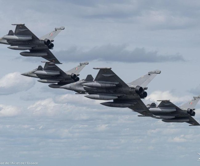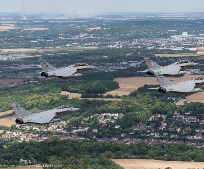 भारत वायु सेना ने कहा कि भारतीय और फ्रांसीसी वायु सेना के राफेल 14 जुलाई को आगामी बैस्टिल डे परेड के लिए सही तालमेल हासिल करने के लिए पेरिस के आसमान पर अभ्यास करते हैं।