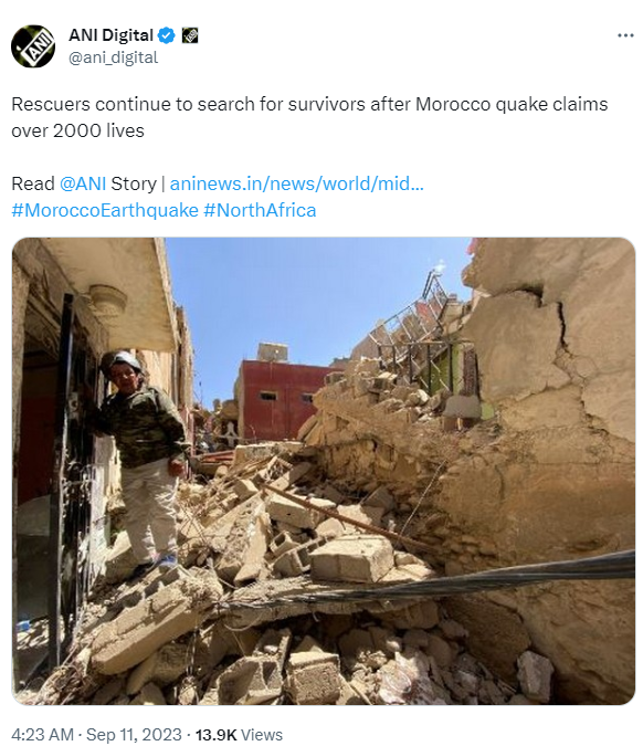 Morocco Earthquake: मोरक्को में भूकंप से मरने वालों की संख्या 2100 के पार, मलबे में तलाशी जा रही जिंदगी