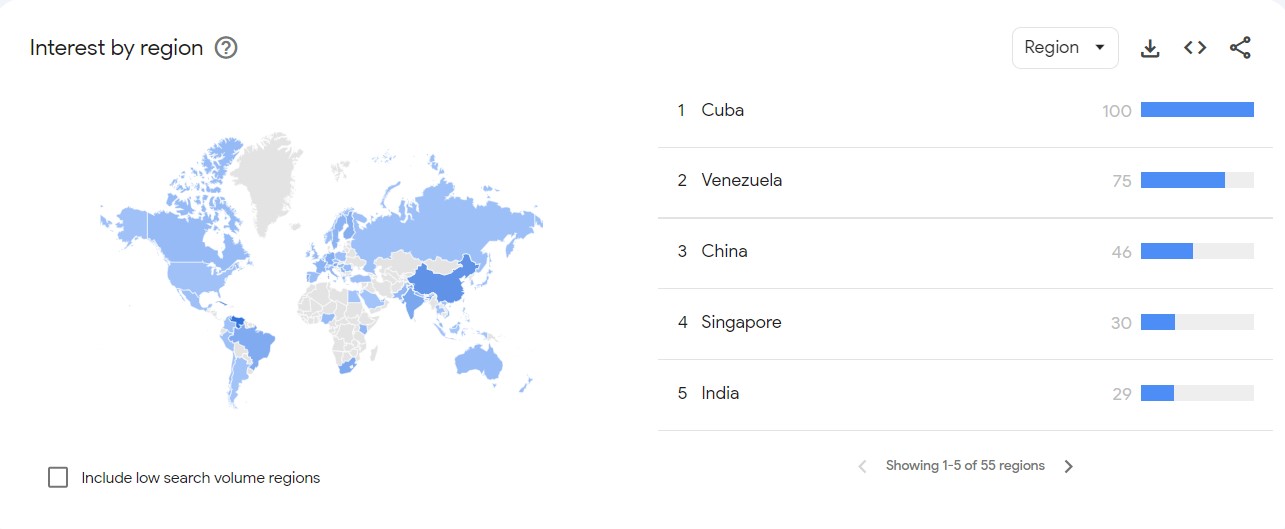 ब्रिक्स शिखर सम्मेलन के बारे में भारत के साथ-साथ क्यूबा, वेनेजुएला, चीन और सिंगापुर समेत 55 से ज्यादा देशों में लोग BRICS के बारे में सर्च किया जा रहा है।