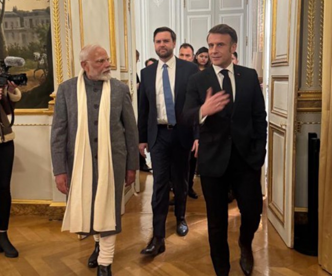 पेरिस में एआई शिखर सम्मेलन की सह-अध्यक्षता करने से पहले फ्रांसीसी राष्ट्रपति इमैनुएल मैक्रों ने प्रधानमंत्री नरेंद्र मोदी का स्वागत किया। यहां पीएम मोदी ने अमेरिका के उपराष्ट्रपति जेडी वेंस से भी मुलाकात की। पीएम मोदी तीन दिवसीय फ्रांस की यात्रा पर हैं। यहां वे एआई एक्शन शिखर सम्मलेन में हिस्सा लेंगे। इसके बाद वह अमेरिका की यात्रा पर जाएंगे।