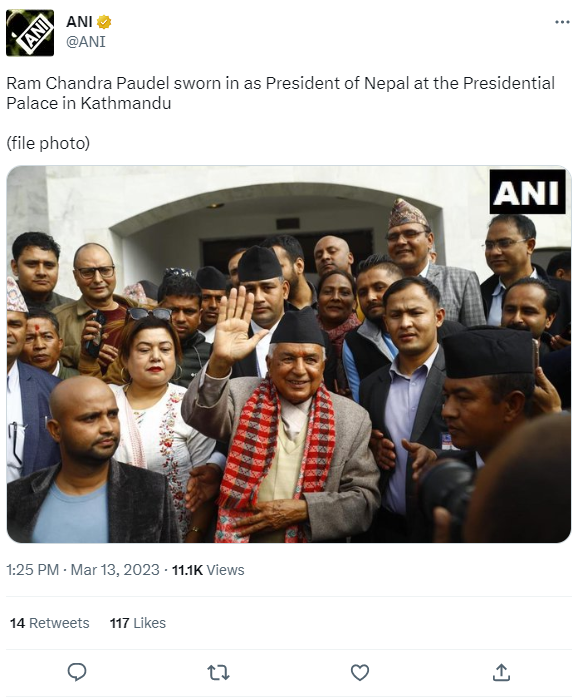 बता दें कि पौडेल को राजनीति का लंबा अनुभव है, जो उन्हें नए पद के लिए उपयुक्त बनाता है। नेपाल के निर्वाचित राष्ट्रपति पौडेल ने 9 मार्च को समाचार एजेंसी ANI से कहा, 'मैंने पहले भी विभिन्न सरकारी भूमिकाएं निभाई हैं। मैं राजशाही के दौरान शाही महलों में भी गया हूं, हाउस स्पीकर भी बना हूं और सप्ताह में एक बार महल का दौरा भी कर चुका हूं। इसलिए मैं जो भूमिका निभाऊंगा वह मेरे लिए नई नहीं होगी। मैं पूर्व राष्ट्रपतियों के साथ भी मीटिंग करता रहा हूं और वहां की कार्यप्रणाली को भी जानता हूं। मैं भूमिका और कर्तव्यों के लिए नया नहीं हूं।'