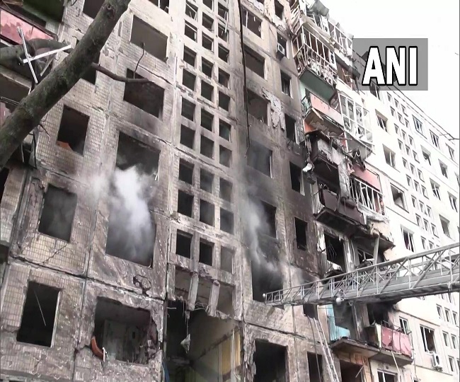 यूक्रेन की राजधानी कीव में रात भर रूसी सेना की ओर से गोलाबारी की गई। जिसके चलते कीव में एक इमारत में आग लग गई। राज्य आपातकालीन सेवा के अनुसार, सुबह 6:51 बजे तक आग पर काबू पा लिया गया। जबकि एक व्यक्ति को अस्पताल में भर्ती कराया गया है।